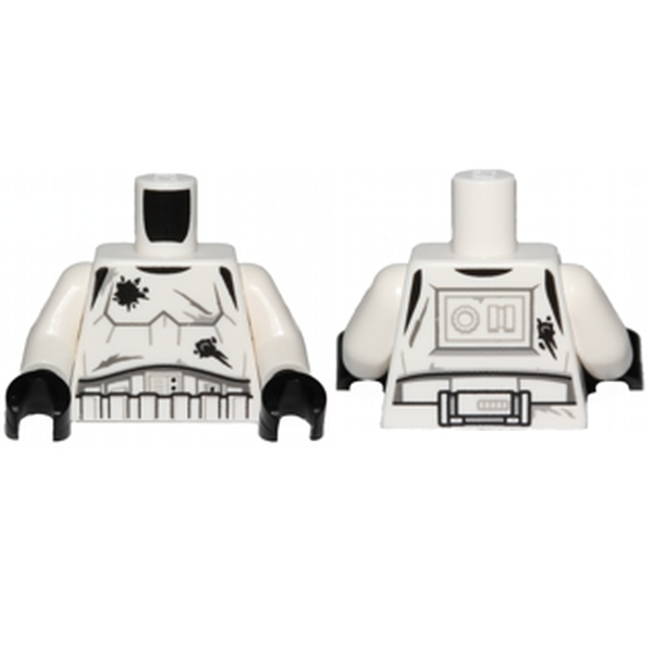 Торс штурмовика в специальной броне, Детализированная броня без плечевых ремней, Боевые повреждения с рисунком царапин и дыр / Белые руки / Черные кисти 973pb2202c01